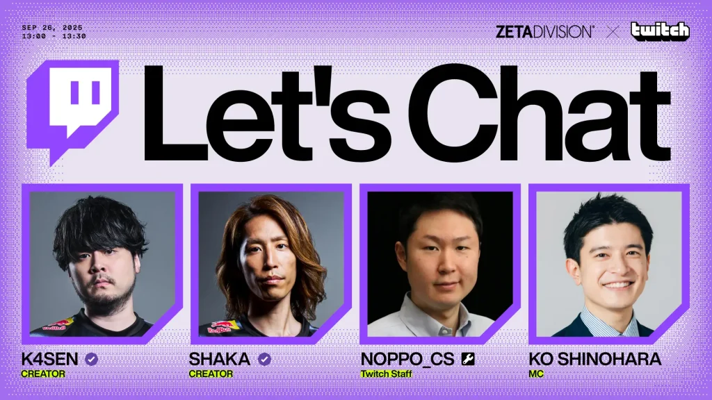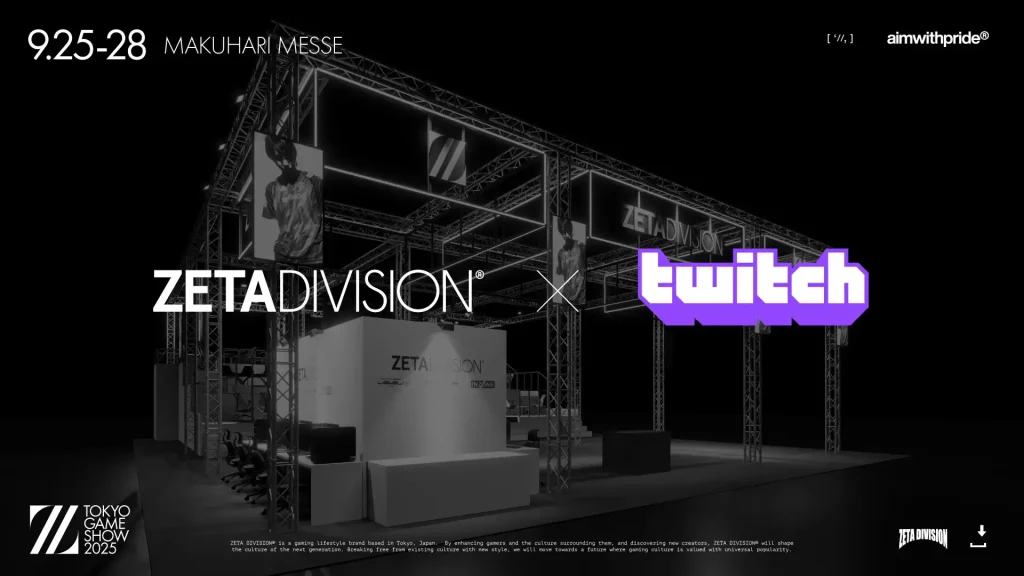 『TOKYO GAME SHOW 2025』において 「ZETA DIVISION」とライブ配信サービスの「Twitch」がパートナーシップを結び、ZETA DIVISIONブースにおいて、「ZETA DIVISION × Twitch Partner Lounge」を展開いたします。