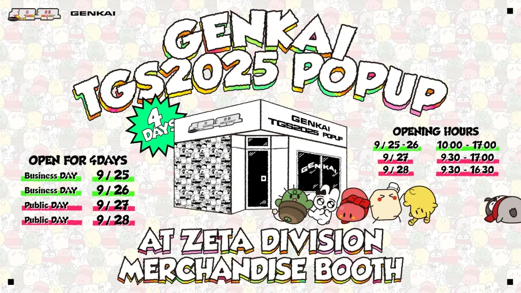 今回の物販ブースでは、「ZETA DIVISION」所属の焼きパンを一員とする配信者集団「限界」のポップアップも実施。ブース外観は「限界」カラーがあしらわれたデザインを採用。また今回の『TOKYO GAME SHOW 2025』から販売開始する「限界」グッズもラインナップ予定。
